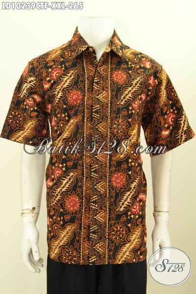 Batik Kemeja Lengan Pendek Solo Full Furing, Pakaian Batik Pria Gemuk Motif Bagus Bahan Adem Proses Cap Tulis, Di Jual Online 265K [LD10239CTF-XXL]