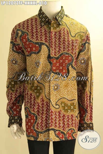 Batik Kemeja Mewah Lengan Panjang Exclusive Untuk Pria Gemuk Sekali, Pakaian Batik Premium Jenis Tulis Pakai Furing, Tampil Gagah Berwibawa [LP12072TF-XXXXL]