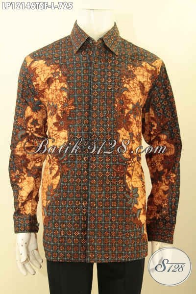 Batik Kemeja Mewah Lengan Panjang Full Furing, Baju Batik Solo Premium Bahan Halus Motif Elegan Tren Masa Kini Tulis Soga, Pas Buat Kerja Atau Rapat [LP12146TSF-L]