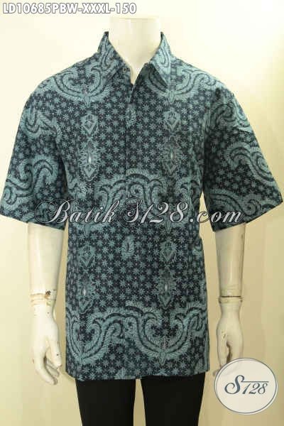 Batik Kemeja Pria Gemuk, Hem Batik Elegan Bahan Adem Proses Printing Cabut Ukuran L4, Modis Untuk Santai Dan Resmi [LD10685PBW-XXXL]
