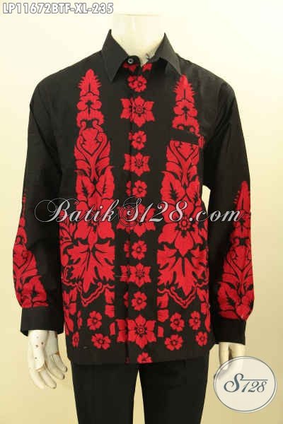 Batik Kemeja Pria Lengan Panjang Modis Motif Unik, Busana Batik Solo Full Furing Bahan Adem Warna Merah Proses Printing Cabut, Membuat Penampilan Lebih Gagah Dan Keren Hanya Dengan 200 Ribuan [LP11672BTF-XL]