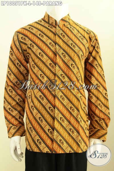 Batik Kemeja Pria Motif Parang Klasik, Busana Batik Elegan Proses Printing Model Koko Krah Shanghai Bikin Penampilan Tampan Dan Gagah [LP10051PK-L]