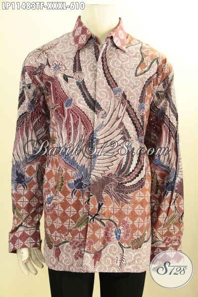 Batik Kemeja Pria Spesial Untuk Lelaki Gemuk, Baju Batik Jumbo Nan Mewah Model Lengan Panjang Full Furing Motif Bagus Proses Tulis Harga Terjangkau [LP11483TF-XXXL]