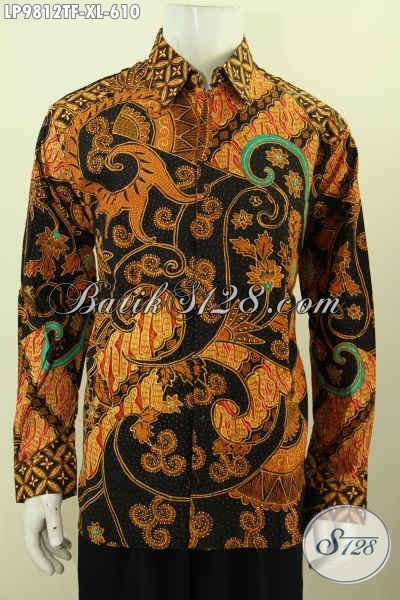 Batik Kemeja Seragm Kerja Lengan Panjang Mewah, Baju Batik Hem Full Furing Motif Klasik, Baju Batik Tulis Asli Desain Berkelas, Harga 600 Ribuan [LP9812TF-XL]