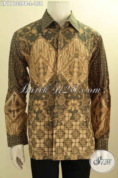 Batik Kemeja Solo Lengan Panjang Size L, Busana Batik Kerja Nan Elegan Yang Juga Cocok Untuk Acara Resmi, Bahan Adem Motif Klasik Printing Cabut Hanya 158K [LP11133PB-L]