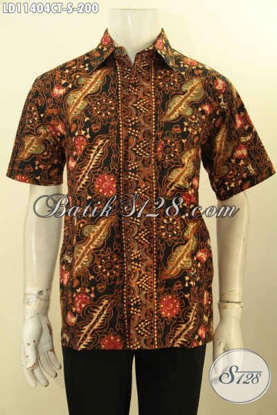 Batik Kemeja Solo Lengan Pendek Desain Keren Motif Elegan, Pakaian Batik Kerja Pria Muda Proses Cap Tulis, Bikin Penampilan Nan Mempesona [LD11404CT-S]