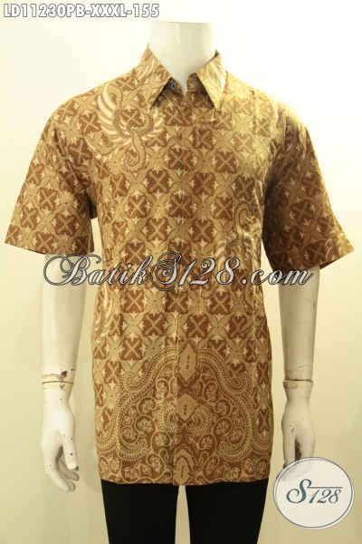 Batik Kemeja Solo Modis Dan Elegan, Pakaian Batik Kerja Spesial Untuk Pria Gemuk Sekali, Busana Batik Big Size Harga Terjangkau Asli Solo [LD11230PB-XL]