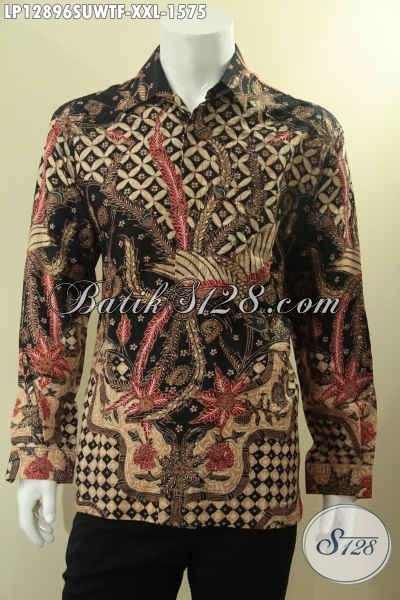 Batik Kemeja Solo Premium Bahan Sutra Twis, Busana Batik Mewah Lengan Panjang Full Furing Motif Elegan Tulis Asli, Bisa Untuk Kondangan Maupun Acara Resmi Kesukaan Para Pejabat [LP12896SUWTF-XXL]