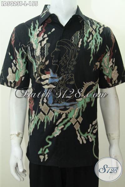 Batik Kemeja Warna Dasar Hitam Elegan Berpadu Motif Trendy Kesukaan Pria Muda, Baju Batik Lengan Pendek Proses Tulis Untuk Cowok Terlihat Modis Sekali [LD5023T-L]