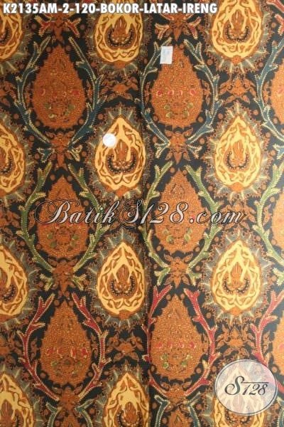 Batik Klasik Bokor Latar Ireng, Batik Jawa Tengah Etnik Proses Kombinasi Tulis Kwalitas Halus, Cocok Banget Buat Busana Formal Tampil Elegan [K2135AM-240x105cm]