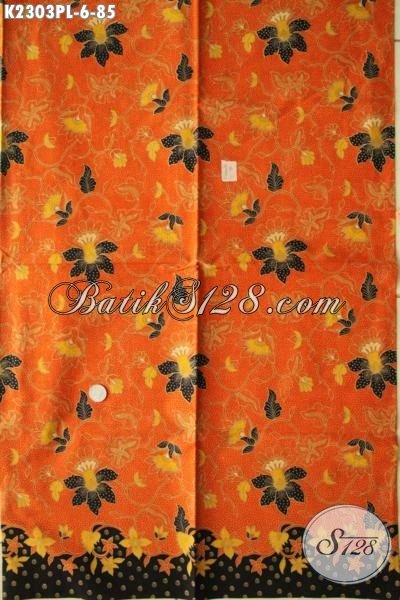 Batik Orange Motif Modern Bahan Pakaian Kerja Dan Santai Tampil Modis Dan Keren, Batik Kain Printing Lasem Kwalitas Istimewa Harga 85K [K2303PL-240x110cm]