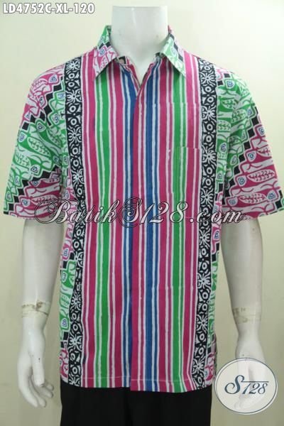 Batik Santai Pria Muda Dan Dewasa, Baju Batik Solo Proses Cap Warna Cerah Bikin Penampilan Lebih Segar Dan Mempesona [LD4752C-XL]