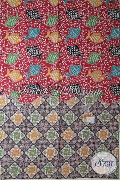 Batik Solo Dua Motif, Kain Batik Motif Ikan Dasar Merah Bahan Pakaian Berkwalitas Dan Trendy [K1873CT-200 x 110 cm]