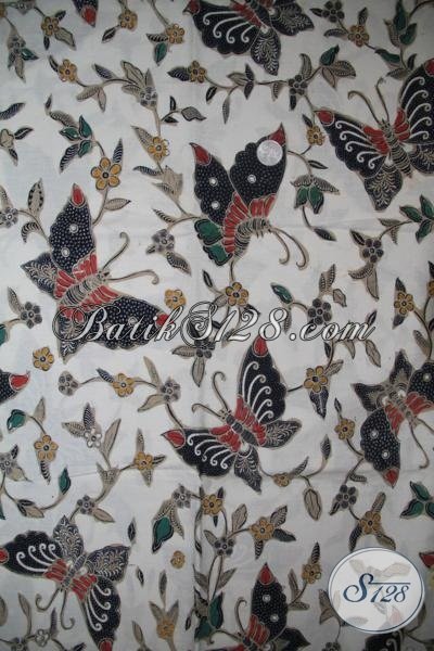 Batik Solo Modern Proses Kombinasi Tulis Dengan Dasar Putih Motif Kupu-Kupu Sangat Cocok Untuk Busana Kerja WanitaKarir Aktif dan Kreatif [K1426BT]