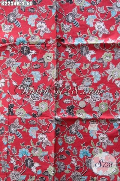 Batik Solo Terbaru Hadir Dengan Warna Dasar Merah Berpadu Motif Bunga Nan Mewah, Kain Batik Printing Modis Bahan Pakaian Wanita Tampil Gaya Hanya Dengan 60K [K2234P-200 x 110 cm]