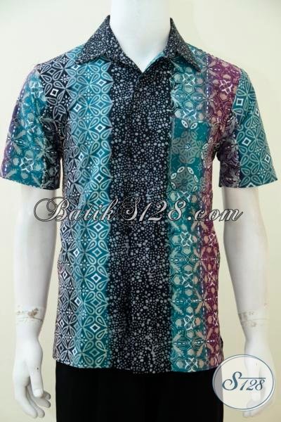 Batik Solo Trendy Warna Gradasi Motif Trendy, Busana Batik Lengan Pendek Gaul Modis Cocok Untuk Pria Muda Jaman Sekarang [LD2507CTG-M]