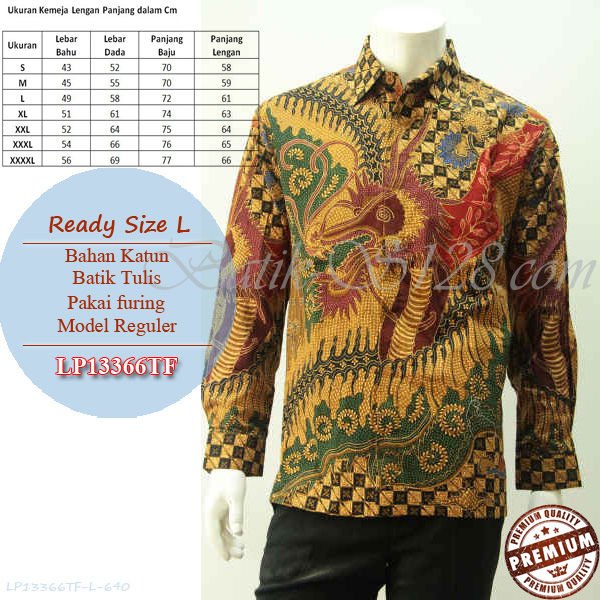 Baju batik tulis laki-laki lengan panjang dibuat dari bahan katun primisima pilihan dan diproses dengan teknik batik tulis asli yaitu dilakukan dengan cara manual menggunakan canting dan lilin (malam).