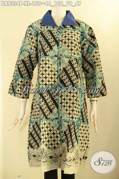 Batik Wanita Dewasa Warna Bagus Bahan Halus Desain Kekinian, Pakaian Batik Wanita Tren Masa Kini Lengan 7/8 Pakai Kancing Depan Hanya 100 Ribuan [DR9334P-XL]