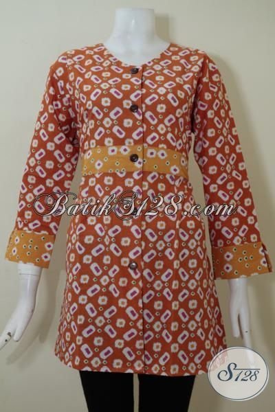 Belanja Busana Batik Wanita Warna Orange Model Bagus Motif Keren, Baju Batik Kerja Dan Santai Kwalitas Mewah Harga Bawah [BLS2097P-L]