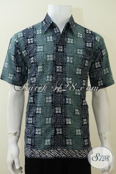 Beli Busana Batik Pria Trend Mode Masa Kini, Baju Batik Lengan Pendek Kombinasi Warna Hijau Dan Hitam Dengan Motif Keren Yang Unik Serta Fashionable [Ld3125CT-M]