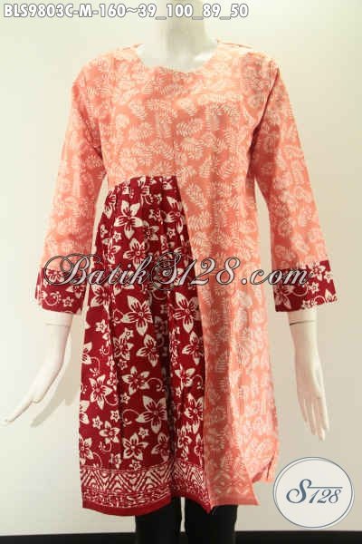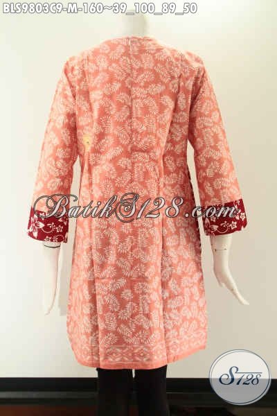Blouse Batik Buatan Solo Asli Lengan 7/8, Pakaian Batik Wanita Modern Model Tanpa Krah Yang Di Lengkapi Resleting Jepang, Cocok Untuk Buat Ngantor Maupun Jalan-Jalan [BLS9803C-M]