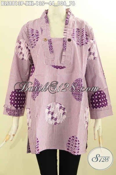 Blouse Batik Jumbo Lengan 7/8, Busana Batik Wanita Gemuk Model Kutubaru Warna Ungu Motif Kekinian Hanya 100 Ribuan [BLS8813P-XXL]