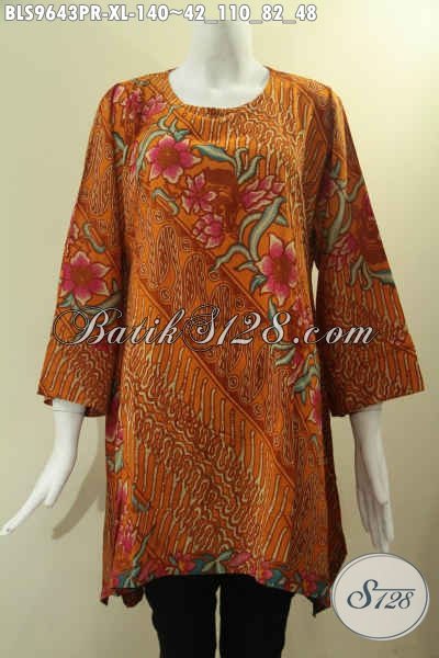 Blouse Batik Modern Khas Jawa Tengah Motif Elegan, Busana Batik Istimewa Lengan 7/8 Bahan Paris Model A Tanpa Krah Pakai Kancing 1 Di Belakang, Cocok Untuk Seragam Kerja [BLS9643PR-XL]