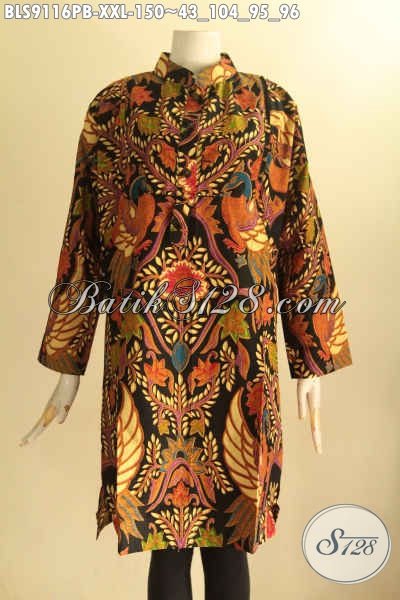 Blouse Batik Motif Klasik Proses Printing Cabut, Busana Batik Elegan Kerah Shanghai Lengan 7/8 , Wanita Gemuk Tampil Berkelas Dan Modis Hanya Dengan 100 Ribuan Saja [BLS9116PB-XXL]