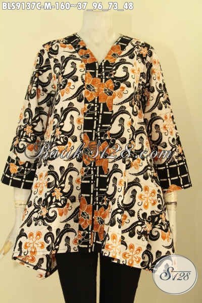 Blouse Batik Solo Untuk Wanita Muda, Baju Batik Trendy Motif Elegan Jenis Cap Berpadu Dengan Desain Keren, Menunjang Penamplan Lebih Cantik Menawan [BLS9137C-M]