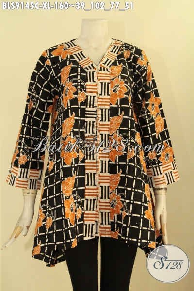Blouse Batik Wanita Dewasa Bisa Untuk Kerja Dan Jalan-Jalan, Berbahan Halus Motif Kekinian Jenis Cap, Tampil Gaya Mempesona [BLS9145C-XL]