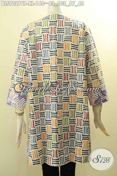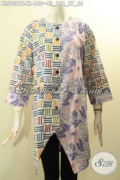 Blouse Batik Wanita Dewasa Lengan Panjang 7/8, Busana Batik Modern Kancing Depan Motif Bagus Proses Cap Kwalitas Istimewa Harga Terjangkau, Cocok Untuk Santai Dan Kerja [BLS9027C-XL]