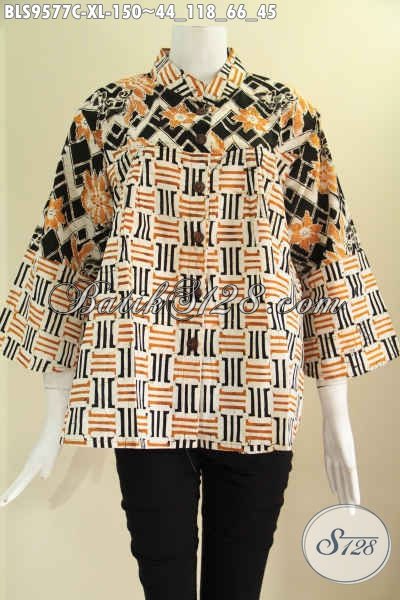 Blouse Batik Wanita Dewasa Untuk Kerja Kantoran Model Kerah Shanghai 2 Motif Kwalitas Istimewa Lengan 7/8 Di Lengkapi Kancing Depan [BLS9577C-XL]