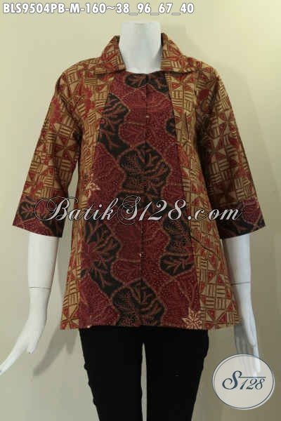 Blouse Batik Wanita Kombinasi 2 Motif Model Krah Lengan 7/8 Dan Di Lengkapi Kancing Depan, Bikin Penampilan Cantik Dan Kekinian [BLS9504PB-M]