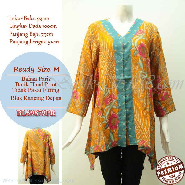 Blus batik model Kartini dengan ciri khas ada tompal atau lis atau border dibagian depan terlihat mewah dengan memakai bahan katun paris yang lembut dan jatuh.
