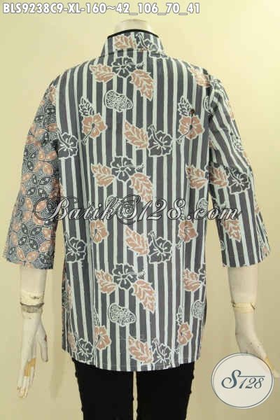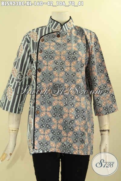 Blouse Kerah Shanghai Lengan 3/4 Kancing Depan Kombinasi Plesir Polos Bahan Batik Jenis Cap, Cocok Buat Ngantor Dan Acara Resmi [BLS9238C-XL]