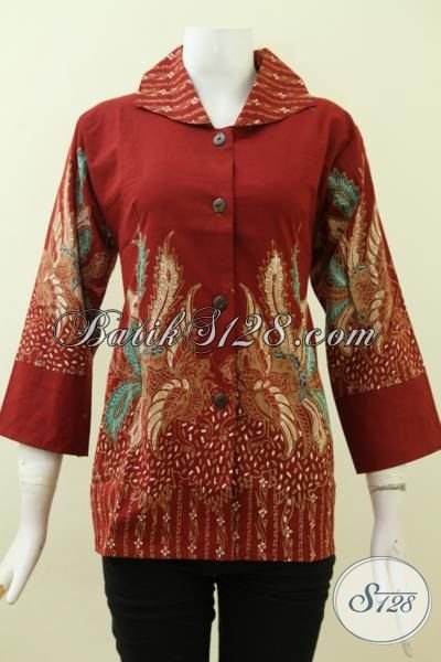 Blus Baju Batik Merah Motif Mewah Terbaru Buat Wanita Dewasa Berpenampilan Lebih Menarik Dan Berkelas, Baju Batik Tulis Kwalitas Halus Dan Adem [BLS2716T-M]