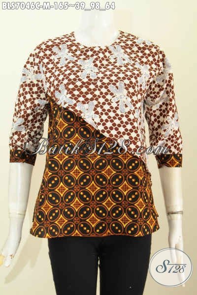 Blus Batik 2 Motif, Pakaian Batik Keren Desain Silang Kombinasi 2 Warna Bahan Adem Proses Cap, Tampil Lebih Mempesona [BLS7046C-M]