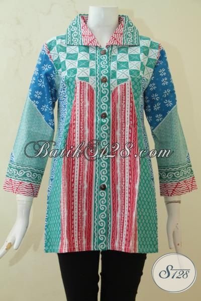 Blus Batik Aneka Warna, Batik Printing Desain Formal Pas Buat Baju Kerja Wanita Karir, Busana Batik Murah Tampil Mewah [BLS3230P-M ,L]