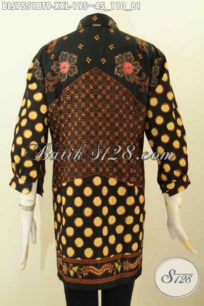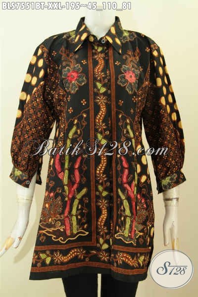 Blus Batik Atasan Wanita Untuk Kerja, Busana Batik Pastion Model Kerah Dengan Lengan Paspol Motif Klasik Kombinasi Tulis, Tampil Gaya Dan Mempesona [BLS7551BT-XXL]