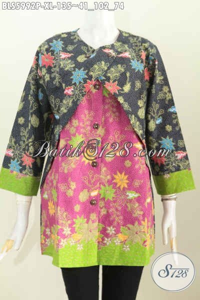 Blus Batik Buat Kerja, Pakaian Batik Keren Bahan Adem, Batik Blus Lengan Panjang Pake Rompi Lebih Berkelas Dan Istimewa Harga 135K [BLS5992P-XL]