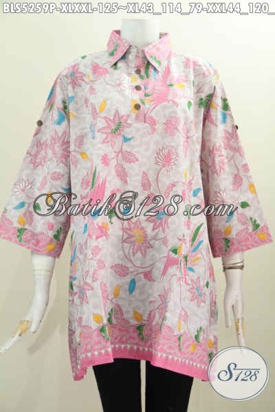Blus Batik Cantik Dengan Warna Nuansa Pink Cewek Banget, Busana Batik Atasan Kancing Depan Kerah Model A Proses Printing Untuk Penampilan Lebih Gaya Dan Modis [BLS5259P-XL , XXL]