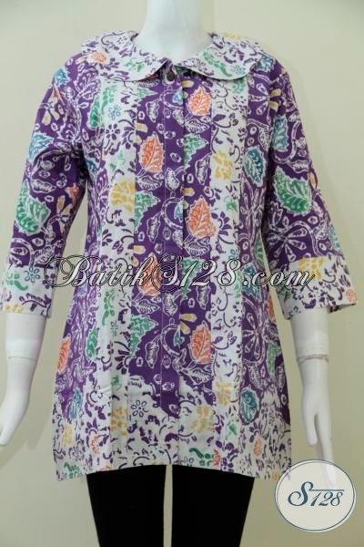 Blus Batik Cap Asli Solo Kwalitas Bagus, Baju Batik Seragam Kantor Dengan Motif Terkini Warna Trendy Dan Fashionable Untuk Segala Acara [BLS1511C-XL]
