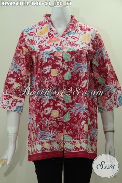 Blus Batik Cap Kerah Langsung Buatan Solo, Baju Batik Merah Berkelas Yang Modis Buat Kerja Dan Acara Formal [BLS4241C-L]