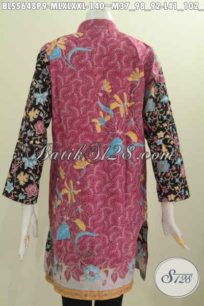 Blus Batik Dua Warna, Baju Muslim Batik Lengan Panjang Motif Bunga Pake Kerah Shanghai Proses Printing Harga 140K [BLS5648P-L , XL , XXL]