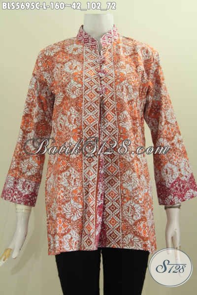 Blus Batik Dua Warna, Pakaian Batik Model Pias Depan Kancing Besar Motif Mewah Proses Cap Di Jual Online Harga Grosir [BLS5695C-L]