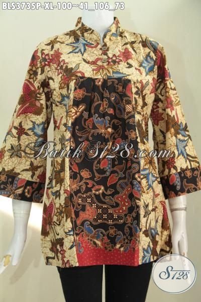 Blus Batik Dual Motif Dan Warna, Pakaian Batik Kerja Perempuan Dewasa Ukuran XL, Baju Batik Model Terkini Proses Printing Kwalitas Mewah Harga Murah [BLS3735P-XL]