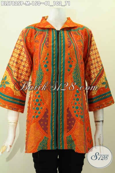 Blus Batik Elegan, Baju Batik Klasik Printing Motif Sinaran, Pakaian Batik Modis Dengan Resleting Depan Bikin Wanita Terlihat Menawan [BLS7825P-M]
