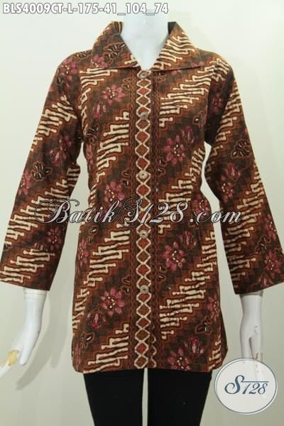 Blus Batik Elegan Desain Berkelas Motif Parang Bunga, Pakaian Batik Wanita Massa Kini Sesuai Untuk Kebutuhan Seragam Kerja [BLS4009CT-L]