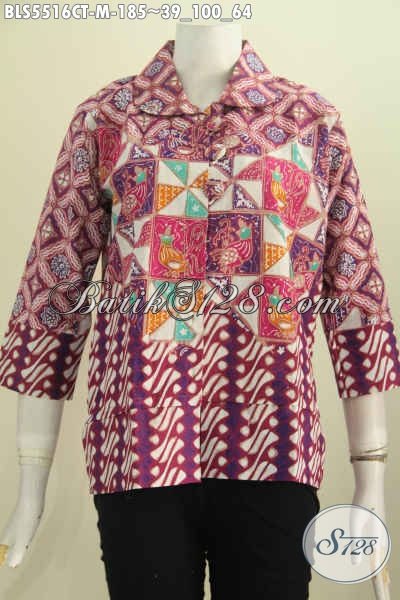 Blus Batik Fashion Exclusive Buat Wanita Karir, Pakaian Batik Kerah Bulat Motif Mewah Proses Cap Tulis Untuk Penampilan Yang Mempesona [BLS5516CT-M]