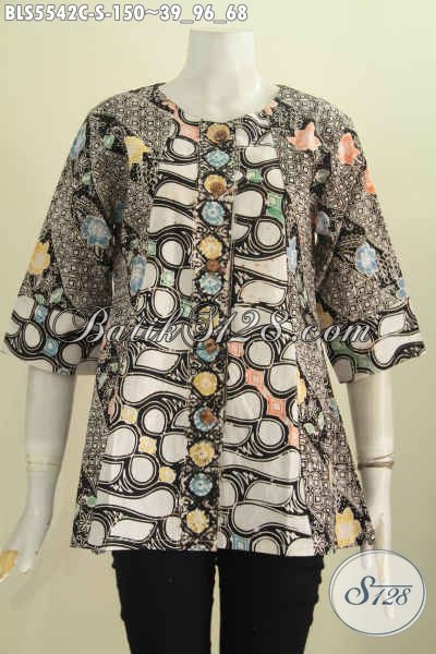Blus Batik Fashion Model Tanpa Kerah, Pakaian Batik Motif Unik Proses Cap Harga Terjangkau Buat Tampil Lebih Gaya [BLS5542C-S]